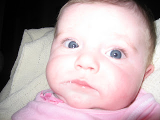 My poor Mommy has been sick all weekend and had to call in sick to work tonight. They said it was something she ate. I am suppose to start eating stuff besides formula soon, I hope it doesn't make me sick. I have been a good girl though and am now sleeping at least 8 hours at night. This has made me happier during the day, and I like to play and smile more. I am even starting to giggle a little. It is nice to have a routine.