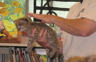 Thursday we went over to the Trussville Library where T&N Acres brought in some baby animals. They brought a lot of animals and some that I have never seen, we even got to pet some of them. They brought a baby snake, alligator, albino kangaroo, hedgehog, wild cat, lemur, honey bear (kinkajou), and sheep. I love animals!